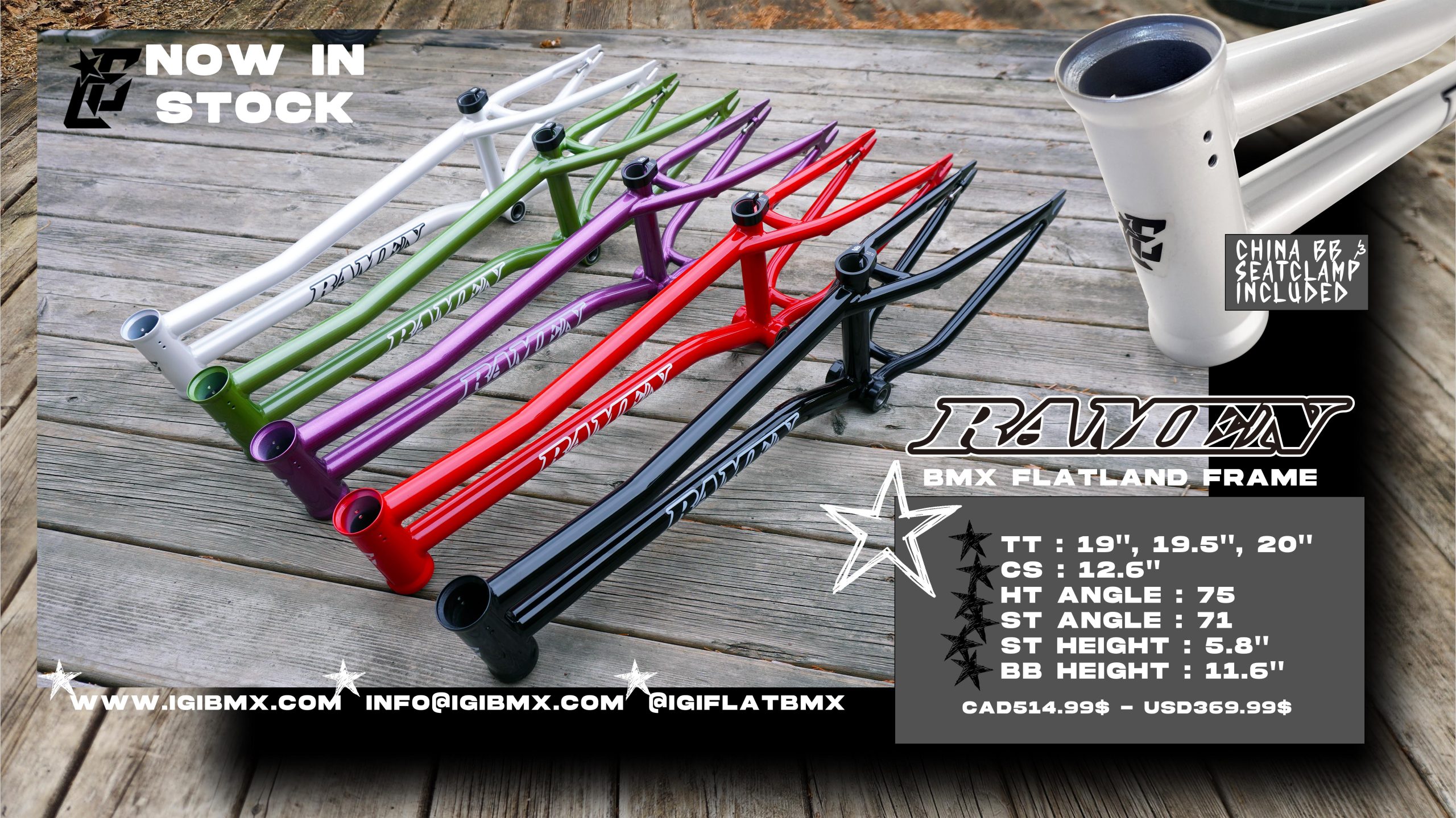 The FEC Ramen Frame brings back the bent top and down tube beloved style of bmx flatland frames , but with the sleek / clean double diamond frame design vibe. This frame comes with removable gyro tabs and brake mounts, as well as chain tensioners and you can find it in 19” , 19.5” and 20” versions. They all sport a 5.8” seattube height which keeps the frame tight for either front or backwheel with ample space to navigate crossfooted tricks around the frame and such. Make sure to tag @fareastcycles on instagram when you get yours built so we all get the see the sweet builds that come out!!